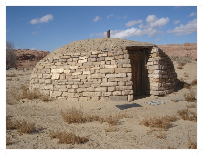 A hogan is the primary, traditional dwelling of the Navajo people. Other traditional structures include the summer shelter, the underground home, and the sweat house. A hogan can be round, cone-shaped, multi-sided, or square; with or without internal posts; timber or stone walls and packed with earth in varying amounts or a bark roof for a summer house, with the door facing east to welcome the rising sun for wealth and good fortune.