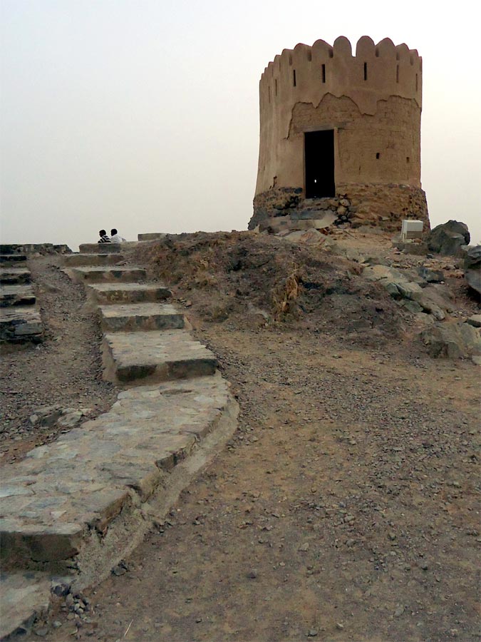 The mosque’s date of construction is uncertain and because the mud and stone built structure uses no wood, radiocarbon dating is not possible. It is estimated to date to the 15th century, however some much earlier estimates have been proposed. The site was investigated by the archaeological center of Fujairah in cooperation with the University of Sydney from 1997-98. and Fujairah Archaeology and Heritage Department concluded that the mosque was believed to be built in 1446 AD, along with the two watch towers overlooking the mosque and the village.